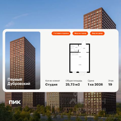 Продаётся квартира-студия площадью 20,08 кв.м на 18 этаже 33 этажного дома (Корпус 1.3, Секция 1) проекта ПИК Первый Дубровский. Светлый просторный подъезд на уровне земли, функциональная планировка, большие окна, c отделкой. Первый Дубровский будет построен в Южнопортовом районе всего в 5 минутах пешком от станции метро "Волгоградский проспект". Дорога на автомобиле до Садового кольца займёт 7 минут, а до ТТК - 4 минуты. Проект задуман небольшим и уютным - в нём будет всего 4 корпуса с переменной высотой: 28, 33 и 38 этажей с подземным паркингом. Не территории мы построим детский сад на 150 малышей и школу для 350 учеников. А во дворе - зелёный парк с детскими и спортивными площадками и зонами для отдыха. На первых этажах откроются магазины, кафе и другие сервисы. Южнопортовый район - приятное место для жизни и отдыха. Здесь есть множество детских садов, вузы и школы. Для прогулок подойдут уютные парки и пруды, а для развлечений - парк развлечений "Остров Мечты", различные спортивные центры и комплексы. В проекте предусмотрена медленная зона для электросамокатов — с 7 утра до полуночи при въезде на территорию квартала скорость электросамокатов автоматически снижается до 15 км/ч. Артикул 890750 (Застройщик ООО Специализированный застройщик "ДРСУ-34")