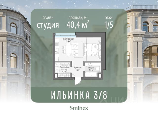 "Ильинка 3/8" - cамая близкая к Кремлю и Красной площади коллекция клубных особняков. Дом расположен на месте Тёплых торговых рядов: 160 м до Красной площади, 300 м до Кремля, 500 м до Администрации Президента. Ранее в этой исторической локации проживали представители царских сословий. По соседству находятся одна из старейших в городе Богоявленская церковь и Биржевая площадь. Расположение дарит жителям комфорт и разнообразие: пересечение Ильинки и тихого Богоявленского переулка с минимальным трафиком автомобилей, близость Никольской улицы с её насыщенной инфраструктурой - от топовых бутиков до ресторанов Michelin. "Ильинка 3/8" - это 7 эксклюзивных и роскошных особняков: 3 деликатно реконструированных исторических и 4 новых. В них представлена инфраструктура только для своих: красивый двор-сад с парадной и торжественной входной группой; лобби-бар для встреч, где можно подождать домочадцев, выпить чашечку кофе или взять её с собой; бесплатный фитнес по стандарту инфраструктуры для здорового образа жизни FIT LAB, общественная гостиная по стандарту FRIENDS LAB для знакомства и совместного времяпрепровождения соседей в доме. В клубных особняках представлены самые полные и лучшие в своём классе системы комфорта. О жителях и доме заботится Служба комфорта Smineх, которая предлагает сервис уровня 5-звёздочных отелей и сохраняет изначальный облик и концепцию дома. Девелопер проекта - Sminex, который специализируется на создании комфортной и престижной среды для жизни и работы.