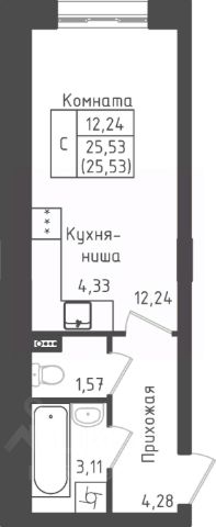 Продаётся студия в строящемся доме (Дом 1), срок сдачи: I-кв. 2026, общей площадью 25.53 кв.м., на 1 этаже. Квартал жилой застройки "Зеленый Оазис-Город"