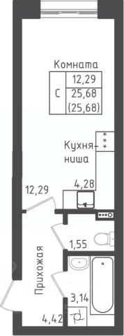 Продаётся студия в строящемся доме (Дом 1), срок сдачи: I-кв. 2026, общей площадью 25.68 кв.м., на 1 этаже. Квартал жилой застройки "Зеленый Оазис-Город"