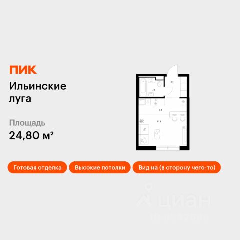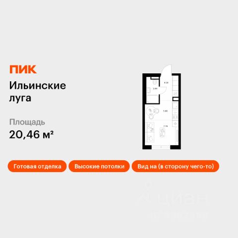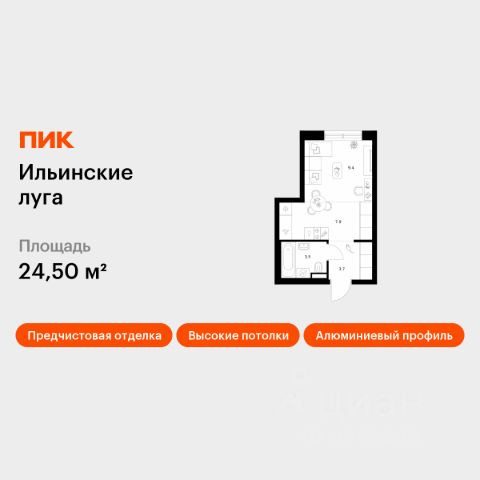 Продаётся квартира-студия площадью 21,5 кв.м на 1 этаже 9 этажного дома (Корпус 4.3, Секция 3) проекта ПИК Ильинские луга. Светлый просторный подъезд на уровне земли, функциональная планировка, большие окна, предчистовая отделка. Жилой район "Ильинские луга" находится в 10 километрах от МКАД по Новорижскому шоссе, в 20 минутах на автомобиле от станций метро "Волоколамская", "Тушинская" и "Строгино". В будущем ближе к проекту, в 9 минутах пути на машине, откроется станция "Ильинская" Рублёво-Архангельской линии, которая будет соединять Арбатско-Покровскую линию и Большую кольцевую линию. Сейчас в квартале начались продажи в корпусах 3.2, 3.3, 3.4, 3.5 и 3.6. "Ильинские луга" — масштабный проект, в который входит девять детских садов, четыре школы и поликлиника. Он строится в престижном и экологичном районе среди лесов и памятников природы. За 5 минут от жилого квартала можно доехать до Рублёво-Успенского шоссе, а за 30 минут — до центра Москвы. До крупного торгового центра "РИГАМОЛЛ" всего 5 минут на автомобиле, а до ТЦ "Твой дом" и гипермаркета "Глобус" — 10 минут. В "Ильинских лугах" строятся только девятиэтажные дома — такая архитектура соответствует спокойной жизни за городом. В каждом дворе-парке есть места для отдыха, детские и спортивные площадки. А ещё, здесь уже открыт большой PlayHub "Гравити" — современное игровое пространство с космической тематикой, холмами, зонами для игр и отдыха жителей любого возраста. На первых этажах уже работают магазины, кафе и пекарни. Места для отдыха от "Ильинских лугов" тоже недалеко: 10 минут на машине — и вы в музее-усадьбе "Архангельское". Также рядом находится Лохин остров — памятник природы, где водятся речные черепахи, есть места для кемпинга и возможность сплавиться по реке. Артикул 1011990 (Застройщик ООО "СЗ "ГРАДОЛИМП")