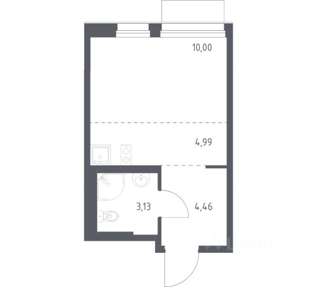 В продаже студия в корпусе 32 ЖК 'Новое Внуково'. Квартира располагается на 10 этаже, общая площадь 22.58 м2.
