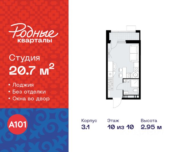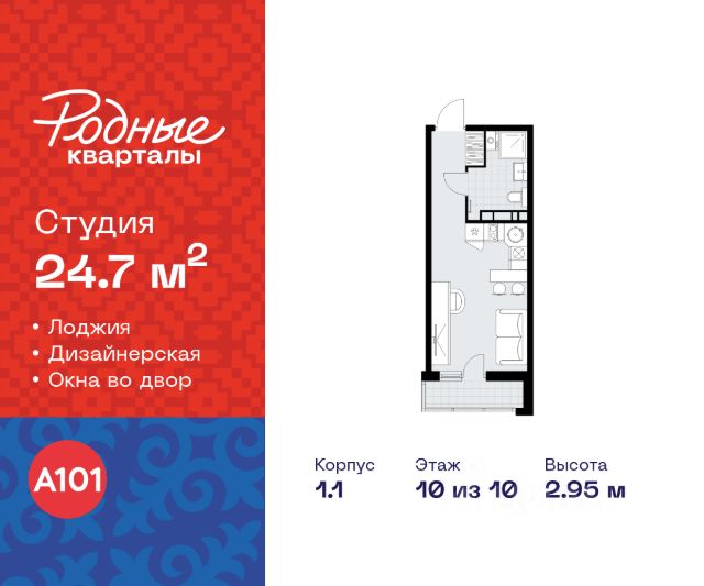 Продается студия 90 в новостройке Жилой район "Родные кварталы" по адресу Москва, ТиНАО, Новомосковский АО, Марушкинское С/П, жилой комплекс Родные Кварталы, 1.1, район Внуково, Новомосковский административный округ, Москва. Общая площадь квартиры - 24.70 кв. м., этаж 10 из 10, секция 1. Тип проекта, по которому построен дом - монолит, компания-застройщик - ООО "А101". Стоимость квартиры - 10064262 Р. Срок сдачи - 4 квартал 2026. ПРЕДЛОЖЕНИЯ ОТ ЗАСТРОЙЩИКА В ФЕВРАЛЕ 2026: Скидки до 10% на все квартиры. Только в офисах продаж до 28 февраля. Ипотека от 13,9 % для всех! На весь срок. "Семейная ипотека" вернулась. Ставка от 3,5 % на весь срок! Без удорожания! Выгодное ипотечное комбо: Ипотека от 2200 р./мес. и от 6 % после рождения ребёнка! Ипотека для всех "Держи пять!" - ставка 5 % на 2 года! *более подробную информацию по скидкам и акциям уточняйте в отделе продаж ЖК "Родные кварталы" строится в экологически благоприятной локации, рядом с парком Изварино и Ульяновским лесопарком. До станции метро "Аэропорт Внуково" и МЦД "Толстопальцево" - 15 мин. на транспорте. До Боровского, Киевского, Минского шоссе - 3, 6 и 20 минут соответственно Основная концепция благоустройства - воссоздание колорита разных регионов России. Этот же принцип использован в благоустройстве и озеленении района от бюро GAFA. Лесопарк, зоны отдыха, пешеходный бульвар со спуском в виде амфитеатра к набережной и центральной торговой площади, спортивные площадки. В шаговой доступности откроются детские сады и школа, поликлиника. На первых этажах домов - спортклубы, клиники, аптеки, супермаркеты, кафе и многое другое. Цветовые решения лобби также созвучны климатическим зонам России. Здесь появятся зоны ожидания с гостевыми санузлами и колясочными. Предусмотрены подземные паркинги и кладовые. Преимущества "Родных кварталов" - уютная атмосфера "малой родины" - полноценная инфраструктура внутри района - выезд на ключевые шоссе - от 3 минут на автомобиле - малоэтажная застройка