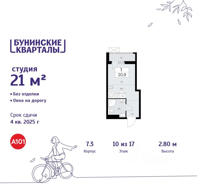 Продаётся квартира-студия площадью 23,4 кв.м на 10 этаже 16 этажного дома (Корпус 2.6/1.2, Секция 2) проекта ПИК Бунинская набережная. Светлый просторный подъезд на уровне земли, функциональная планировка, большие окна, предчистовая отделка. Удобное расположение: 18 минут пешком от м. "Потапово" и 12 минут на автомобиле до станции "Бунинская аллея". 12 минут на автомобиле до трассы Солнцево — Бутово — Варшавское шоссе. 20 минут на автомобиле до МКАД и Калужского шоссе. 1520 минут езды до живописных парков: "Бутовский лесопарк", заказник "Южное Бутово". Особенности проекта Камерный квартал в Новой Москве, на берегу Ивановского пруда. Одна из ключевых особенностей проекта — квартиры с панорамным видом на воду. Архитекторы вдохновились локацией проекта: природные оттенки и активная пластика корпусов напоминают рельефные выступы на берегу, а окна отражают водную гладь, визуально объединяя дома с природой. Преимущества проекта Светлые и просторные лобби с зонами ожидания. Подземный паркинг. Набережная и пешеходная аллея для прогулок. Парк на склоне с игровой зоной. Готовая инфраструктура района: 3 школы, 6 детских садов, взрослая и детская поликлиники. Артикул 968624 (Застройщик ООО СЗ "Стройком")