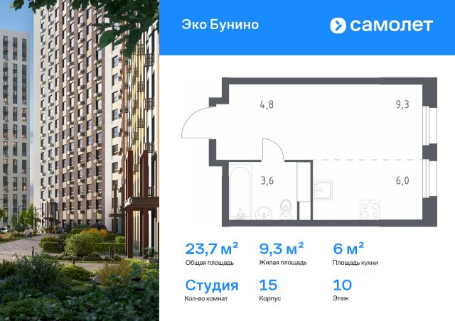 Продаётся квартира-студия площадью 19,2 кв.м на 10 этаже 16 этажного дома (Корпус 2.6/1.4, Секция 4) проекта ПИК Бунинская набережная. Светлый просторный подъезд на уровне земли, функциональная планировка, большие окна, c отделкой. Удобное расположение: 18 минут пешком от м. "Потапово" и 12 минут на автомобиле до станции "Бунинская аллея". 12 минут на автомобиле до трассы Солнцево — Бутово — Варшавское шоссе. 20 минут на автомобиле до МКАД и Калужского шоссе. 1520 минут езды до живописных парков: "Бутовский лесопарк", заказник "Южное Бутово". Особенности проекта Камерный квартал в Новой Москве, на берегу Ивановского пруда. Одна из ключевых особенностей проекта — квартиры с панорамным видом на воду. Архитекторы вдохновились локацией проекта: природные оттенки и активная пластика корпусов напоминают рельефные выступы на берегу, а окна отражают водную гладь, визуально объединяя дома с природой. Преимущества проекта Светлые и просторные лобби с зонами ожидания. Подземный паркинг. Набережная и пешеходная аллея для прогулок. Парк на склоне с игровой зоной. Готовая инфраструктура района: 3 школы, 6 детских садов, взрослая и детская поликлиники. Артикул 969093