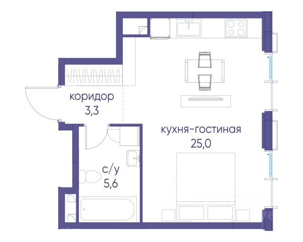 В продаже студия от застройщика. Общая площадь 32.40, жилая 16.80, кухня 9. Квартира расположена на 10 этаже жилого квартала "Событие-6", корпус 2, 4. Квартира без отделки. Срок сдачи: 4 кв. 2029 года. СОБЫТИЕ.6 — финальный дом парк-квартала СОБЫТИЕ на Мосфильмовской. Переезжайте в уже сформированный квартал с готовой инфраструктурой и парком! Премиальный жилой комплекс в престижном районе Москвы предлагает стильную архитектуру, продуманное благоустройство и великолепно разнообразие общественных пространств. Свой парк прямо возле дома! Архитектура Архитектура СОБЫТИЯ.6 выполнена в ультрасовременном стиле московским бюро Atrium на основе дизайн-кода британских архитекторов LDA Design и UHA London. Дом отличает оригинальная геометрия фасадов, большое остекление и высокие лобби (до 6,2 м) с авторской мебелью и светильниками. Расположение Мосфильмовская улица (Раменки) — один из престижных районов Москвы. Близость к историческому и деловому центру, природным зонам Запада столицы. Транспортная доступность: • 10 мин до Москва-Сити и ТТК; • 15 мин до Садового кольца; • 25 мин до аэропорта Внуково; • 7-10 мин до станций метро "Аминьевская" и "Мичуринский проспект". Инфраструктура: • парк "Событие" (12 га, финалист конкурса Правительства Москвы) с беговыми (1,5 км) и велодорожками (2,7 км), экотропой (1,6 км), площадками, лекторием; • школа, детский сад, магазины, салоны красоты, рестораны (к моменту заселения); • мультидвор с игровыми и спортивными площадками, мини-бульваром; • общественная терраса на 10-м этаже (коворкинг, лаунж); • Закрытые общественные пространства: детская комната, спортивный зал, коворкинг, лаунж-зоны. Паркинг 256 мест для жителей (48 — для электромобилей), 24 гостевых (5 — для электромобилей), мойки колес, кладовые, зоны для велосипедов. Окружение Парки и заповедники (Воробьёвы горы, Матвеевский лес и др.), МГУ, театр им. Н. И. Сац, стадион "Лужники". Безопасность Видеонаблюдение, контроль доступа, видеодомофоны, консьерж-сервис 24/7, системы пожарной безопасности и мультисервисная оптическая сеть.