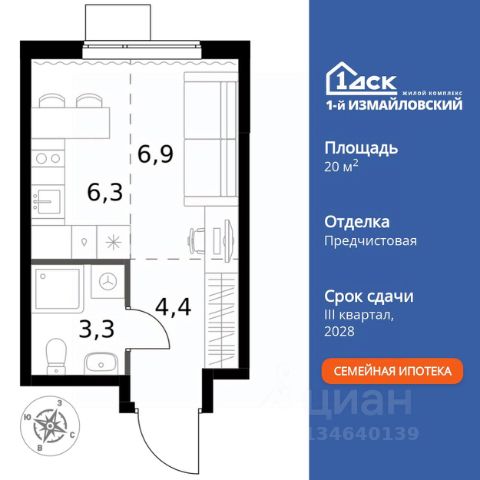 В семейном жилом квартале, расположенном в окружении более 500 га леса и объектов исторического наследия, продается студия площадью 31.3 кв. м без отделки. Квартира расположена на 10 этаже 12-этажного корпуса 2.1 жилого квартала бизнес-класса КОД Сокольники от девелопера Новая Эра. Отличная транспортная доступность - 3 мин. пешком до станции МЦД-3 "Митьково"; - 7 мин. пешком до станции метро "Сокольники"; - Удобный выезд на Русаковскую улицу; - 5 мин. на авто до ТТК; - 15 мин. на авто до Садового кольца. Продуманный архитектурный проект - Выразительная архитектура, созданная бюро "Остоженка"; - 70% квартир в квартале - видовые, что позволяет ежедневно наслаждаться панорамами на парк Сокольники, Останкинскую телебашню, исторический центр и Алексеевский монастырь; - 30% квартир - угловые. Увеличенные оконные проемы, панорамное остекление и продуманное расположение комнат усиливают эффект обзорности: гостиные и спальни получают максимум дневного света и живописные виды, которые становятся частью интерьера; - Высокие потолки от 3 метров в типовых планировках; - Дизайнерские лобби от модной студии 211.Studio; - Двухуровневый паркинг с подогреваемой рампой и пологим заездом, подходящим даже для спорткаров; Расположение Семейный жилой квартал КОД Сокольники - это дома бизнес-класса в престижном районе Сокольники. Район отличает хорошая транспортная доступность: несколько минут пешком до станции метро "Сокольники" и платформы МЦД-3 ("Митьково"), регулярные трамвайные и автобусные маршруты, удобный выезд на Русаковскую улицу и Третье транспортное кольцо. До Садового кольца можно доехать за 15 минут. Для пешеходов и велосипедистов в парковой зоне будут оборудованы широкие тротуары и велодорожки, обеспечивая комфортные условия для активного образа жизни. Внутренняя инфраструктура Резидентам будет доступна развитая клубная инфраструктура: собственный фитнес-рум, коворкинг с панорамным видом на парк, игровая комната для детей, пространства для мастер-классов и просторная гостиная, которую можно использовать для отдыха, просмотра кино или проведения мероприятий. На первых этажах жилых домов разместятся объекты стрит-ритейла: кафе, рестораны, магазины и различные сервисы - от аптек и салонов красоты до ателье и барбершопов. Рядом с жилыми корпусами появится деловой квартал с офисами и торговыми площадями на 75 тысяч кв. м, что делает проект привлекательным для тех, кто ценит возможность жить и работать поблизости. Благоустройство Центральным элементом квартала станет благоустроенный двор-парк площадью 3 га с собственным прудом и зелеными зонами для прогулок и отдыха. В границах двора предусмотрены современные игровые и спортивные площадки: мультифункциональная зона воркаута, площадки для волейбола и стритбола, площадки для пилатеса и йоги, скалодром, а также беговые и веломаршруты. В состав проекта войдет образовательный центр, включающий детский сад для 350 малышей, а также школу на 650 учеников.