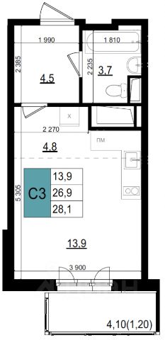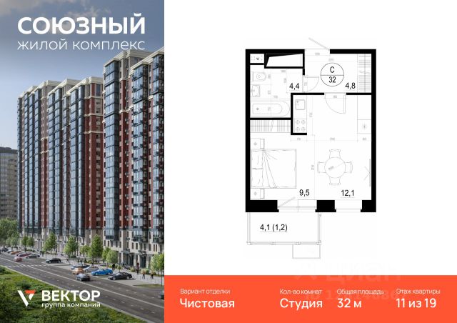 • ✓ В базе Циан 17 квартир-студий на 11 этаже рядом с метро Баковка