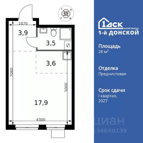 Прямая продажа от застройщика! Жилой Комплекс класса Комфорт Плюс. Продаётся квартира-студия номер 587 общей площадью 24.3 кв.м. на 11-м этаже 24 этажного здания. Отделка Whitebox. Особенности квартиры: - МЦД-5 в пешей доступности - Квартал с собственной набережной - Свои 2 детских сада и школа - Линейная планировка - максимальная функциональность и удобство. - Ниша под шкаф - компактное и удобное место для вещей. Квартира с предчистовой отделкой (White box). Вам не придется заниматься черновыми и трудоёмкими работы, а чистовую отделку и дизайн - сделайте на свой вкус. Информация о комплексе: Комплекс 1-й Донской расположен в 7 км от МКАД по трассе М-4 Дон. В нем сочетаются все плюсы комфортной городской среды и природного окружения. В проекте достаточно большой процент квартир, выходящих на 2-3 стороны света. Секции-маяки формируют у зданий визуальную L-форму, что придает застройке структуру и ритмику объемов. На ощущение динамики работает и разная этажность зданий. Теплая цветовая палитра фасадов отражает природу Дона. Вечерами дома преображаются благодаря архитектурной подсветке, выгодно выделяясь на городском фоне. Природа оказывает положительное влияние на человека на всех уровнях восприятия: через зрение, запахи, звуки, тактильные ощущения. Неподалеку от ЖК Первый Донской: Ермолинский парк, Видновский лесопарк, Жуковский парк Транспортная доступность: Комплекс удобно расположен в 7 км от МКАД по трассе М-4 Дон (через Видное). Расстояние до Каширского шоссе составляет 12 км. Добраться до метро и центра Москвы позволяет развитая сеть маршрутов общественного наземного транспорта. Действующая ж/д станция Калинина Павелецкого направления в 15-17 минутах ходьбы (МЦД-5 в 2025-2026 гг). Внутренняя инфраструктура: Проект 1-й Донской соседствует с бурно развивающимся районом, основная инфраструктура которого уже сложилась. В строительстве современных жилых комплексов в округе есть свои плюсы: здесь формируется продуманная и комфортная городская среда. Что касается внутренней инфраструктуры, на территории квартала будут расположены собственные муниципальные 2 детских садика и школа, которые помогут совместить приятное с полезным. Территория комплекса пронизана целой сетью живописных пешеходных маршрутов, позволяющих попасть в любой уголок района. Основные пути, как водится, "торговые". Они проходят вдоль магазинов, кафе и других представителей коммерции и отделяются от проезжей части зеленой "фито" - стеной. Среди крупных социальных объектов предусмотрены своя поликлиника и торговый центр с примыкающей площадью для общественных мероприятий. Уют начинается с продуманного подъезда. Сквозные подъезды наполнены светом благодаря сплошному остеклению. Вход в них есть и с улицы, и со двора.