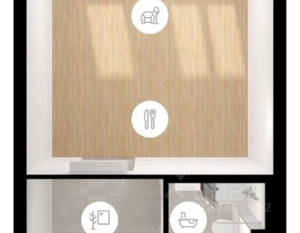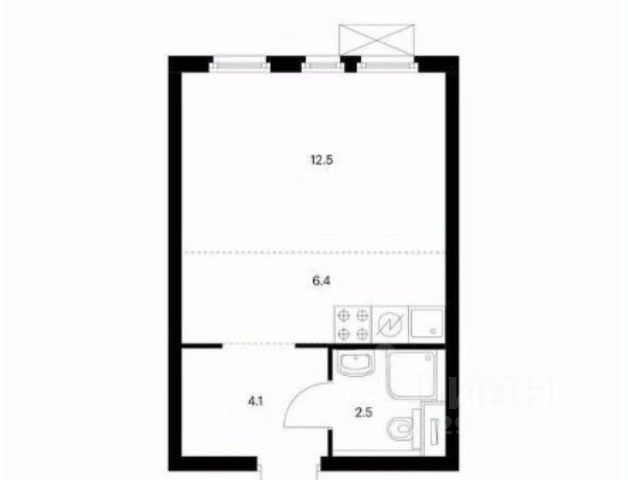 В бетоне, 12 этаж, 48,5 квадратов, свободная планировка.