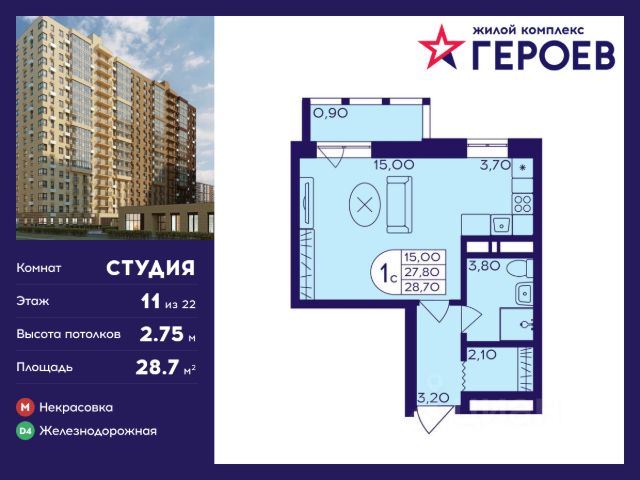 • ✓ В базе Циан 29 квартир-студий на 11 этаже рядом с метро Железнодорожная