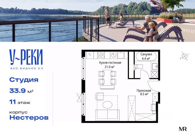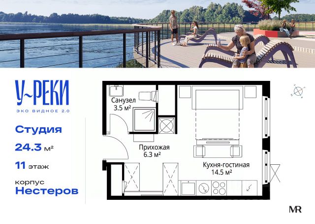 Прямая продажа от застройщика. Продаётся студия общей площадью 22.50 м² с предчистовой отделкой в ЖК "У реки. Эко Видное 2.0" на 11-м этаже корпуса Нестеров. Все корпуса введены в эксплуатацию. Выдача ключей - I кв. 2025г. Жилой комплекс "У реки" - уникальный проект комфорт-класса, в котором применяются стандарты строительства и сервиса MR, характерные для проектов девелопера бизнес и премиум-классов. 17-этажный корпус "Нестеров" расположится на живописном берегу реки Купелинка. Из его квартир откроются захватывающие виды на реку и лес на её противоположном берегу. О проекте: - 5 корпусов переменной этажности; - 8 км от МКАД, 30 минут до метро "Домодедовская", в 2025 года запланировано открытие станции МЦД-5 (дорога по Павелецкого вокзала займёт 30 минут); - Безопасные дворы с детскими и спортивными площадками для разных возрастов; - Собственная набережная с променадом, местами для пикников и рыбалки; - Два детских сада и школа на территории; - Развитая инфраструктура района; - Отделка MR Base (white box) Компания MR предлагает своим клиентам специальные условия приобретения квартир в рамках программ ипотечного кредитования от банков-партнеров.