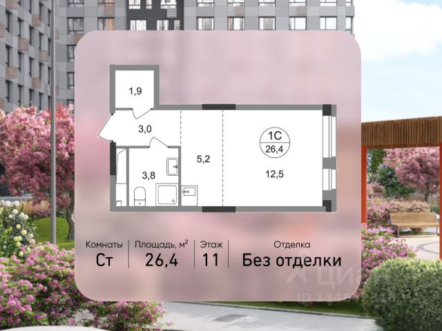 Продается квартира-студия с отделкой в 9 фазе города-парка "Первый Московский". Общая площадь квартиры - 26,4 кв. м, этаж 11 из 19. Срок сдачи - 2 квартал 2027 года. Тип дома - монолитный. ТОЛЬКО ДО 31 МАРТА выгодные условия на приобретение квартиры в ипотеку или рассрочку. Звоните - и мы подберем оптимальное предложение под ваш запрос! Корпус состоит из 3 секций. Город-парк "Первый Московский" расположен всего в 7 км по Киевскому шоссе от МКАД на территории Новой Москвы. Из города-парка прямой выезд на Киевское шоссе и трассу Солнцево-Бутово-Варшавское шоссе. ТРАНСПОРТНАЯ ДОСТУПНОСТЬ: - 5 мин. на личном автомобиле или 10 мин. на автобусе 189, 147, 193 до станции метро "Филатов Луг" - 5 мин. на личном автомобиле или 12 мин. на автобусе 863 до станции метро "Саларьево" - 6 мин. на личном автомобиле или 15 мин. на автобусе 333 до станции метро "Рассказовка" РАЗВИТАЯ ИНФРАСТРУКТУРА В ОКРУЖЕНИИ: - общеобразовательная школа 2120 (корпуса д1, д7, ш1-ш5) - детский сад 2120 (корпуса д2, д9) - школа искусств - городская больница, детская поликлиника, филиал 5 - подстанция скорой помощи 58 и пожарно-спасательный центр 313 - отдел полиции, отдел ГИБДД - торговые центры "Столица" и "Новомосковский" - стадион, каток, бассейн - кафе, продуктовые магазины, аптеки, фитнес-центры, салоны красоты и пр. БЛАГОУСТРОЙСТВО: - дворы без машин - разнообразные детские площадки и развивающие комплексы - детские площадки разделены по возрастным группам - максимальная близость корпуса к парку "Филатов луг" - озеленение территории с учетом зонирования, островками для отдыха ОСОБЕННОСТИ АРХИТЕКТУРЫ: - безбарьерные входные группы - велопарковка на -1 этаже - колясочные в каждой входной группе - коммерческие помещения на 1 этаже в трех секциях - кладовые помещения расположены на жилых этажах и на -1 этаже - в каждой секции корпуса - 4 лифта: 2 пассажирских, 2 грузовых - видеонаблюдение установленное в холлах первых этажей, у подъездов и на прилегающей территории АВТОРСКИЙ ДИЗАЙН: Входные группы выполнены по авторскому дизайну, оснащены системой "тёплый пол". В каждой входной группе будет располагаться комфортабельная зона ожидания, почтовые ящики с ячейкой для спама, колясочная, акцентные пуфы и столик.
