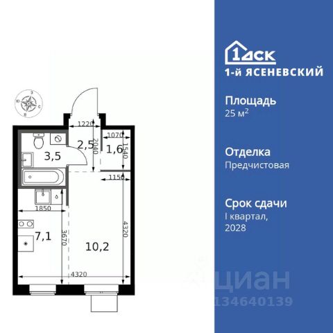 Прямая продажа от застройщика! Жилой Комплекс класса Комфорт Плюс. Продаётся квартира-студия номер 252 общей площадью 27.5 кв.м. на 11-м этаже 18 этажного здания. Предчистовая отделка. Особенности квартиры: - Квартиры рядом с метро - м. Корниловская 9 мин пешком - 63 га лесопарка за окнами - Школа c ИТ-кластером и бассейном. 2 детских сада - Организуем показ в удобное для вас время! - Линейная планировка - максимальная функциональность и удобство. - Увеличенное количество окон - дополнительное освещение и свежий воздух. Квартира с предчистовой отделкой. Вам не придется заниматься черновыми и трудоёмкими работы, а чистовую отделку и дизайн - сделайте на свой вкус. Информация о комплексе: ЖК "1-й Ясеневский": преимущества городской инфраструктуры и природы. Пешая доступность к метро, школе с бассейном и ИТ-кластеру, а также 63 га Троицкого лесопарка под окнами. Закрытая территория с бульварами, велодорожками, кафе и дворами без машин. Фруктовые деревья и городские сады создают уникальную атмосферу. Всего в 1 км от МКАД - идеальный баланс для современной жизни. Транспортная доступность: До метро "Корниловская" - 12 минут пешком До метро "Тютчевская" - 25 минут пешком До метро "Теплый стан" - 10 минут на транспорте До метро "Ольховая" - 30 минут на общественном транспорте Личный автотранспорт: Выезд на Калужское шоссе - 500 м МКАД - 1 км Внутренняя инфраструктура: ЖК "1-й Ясеневский" - идеальное место для семей с детьми. Рядом Троицкий лесопарк для прогулок, а во дворах - современные детские площадки, разработанные с участием психологов. В шаговой доступности два детских сада и школа на 1100 мест с ИТ-кластером, бассейном и классами робототехники. Всё для счастливого детства и успешного будущего. Квартира с предчистовой отделкой - ваш дизайн без черновых работ
