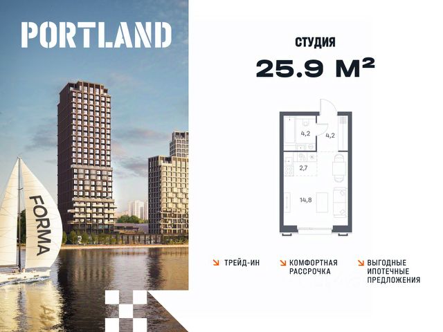 Цена указана с учётом скидки при 100%-й оплате, несубсидированной ипотеке, рассрочке (кроме программы "Рассрочка 0%"). В северной части района Печатники продается студия площадью 28.70 кв.м без отделки. Квартира расположена на 11 этаже 68-этажного корпуса 10 в жилом комплексе комфорт-класса Левел Южнопортовая (компания Level Group/Левел групп). Отличная транспортная доступность: - 10 мин. пешком до станции метро "Кожуховская"; - 20 мин. пешком до станции МЦК "Дубровка"; - 3 мин. на авто до ТТК; - 13 мин. на авто до Садового кольца; - 15 мин. на авто до Бульварного кольца. Продуманный архитектурный проект: - авторская архитектура от бюро СПИЧ; - уникальные виды на реку, парки и достопримечательности города; - высота потолков в квартирах до 6 м; - окна высотой до 1,87 м с высоким коэффициентом сопротивления теплоотдаче. Расположение: Жилой комплекс Левел Южнопортовая строится в северной части района Печатники - самой приближенной к центру. Здесь будет сформирован новый район "Южный порт", где построят крупный жилой и общественно-деловой центр, аналогичный Москва-Сити. В течение 10-12 лет в этом месте появятся не только жилые дома, но и развитая инфраструктура для жизни и работы. А еще совсем рядом находится набережная Москвы-реки, где планируется построить причалы для речных трамвайчиков и канатную дорогу. Уже сейчас вокруг жилого комплекса работают десятки магазинов и торговых центров, рядом расположено 6 парков, среди которых музей-заповедник "Коломенское". В 10 минутах пешком - 2 муниципальных и 2 частных детских сада, 7 общеобразовательных школ. Внутренняя инфраструктура: Для отдыха жителей в каждом корпусе предусмотрено лобби, оснащенное местами для отдыха, гостевыми санузлами и лапомойками, а в отдельных корпусах - камином. За счёт больших окон и высоких потолков пространства будут наполнены воздухом и светом. На первых этажах жилого комплекса откроются магазины, салоны красоты, фитнес-центр. Для детей строятся собственные детский сад и школа. Благоустройство: Внутренний двор комплекса разработан совместно с бюро GAFA. Основная идея - создать аналог Центрального парка в Нью-Йорке, гармонично сочетая высотные здания и большое изолированное парковое пространство. Вся площадь двора-парка будет огорожена и составит более 2 га, из которых 45% - озеленение. Одним из самых важных ландшафтных элементов здесь станет небольшая речка, наполняющаяся во время дождя. Вокруг неё появится сеть из островов, внутри которых расположатся тематические зоны спорта и отдыха. Технологии и инженерия: - автоматическая передача в управляющую компанию показаний квартирных счётчиков; - телефонная связь, телевидение и интернет на базе оптической мультисервисной сети; - гостевой Wi-Fi в лобби и на территории двора; - единый ключ доступа для входа на территорию комплекса.