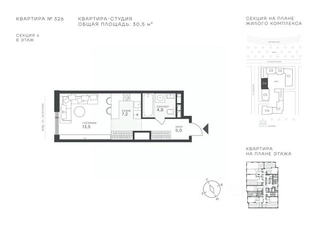 О квартире Продаётся студия общей площадью 28.30 кв. м. с отделкой на выбор: черновая, White Box. Квартира на 11 этаже корпуса 5.8 в жилом комплексе бизнес-класса "Среда на Лобачевского". До метро "Аминьевская" 7 минут пешком. Развитый район с удобным выездом "Среда на Лобачевского" строится рядом с Аминьевским и Очаковским шоссе, отсюда можно доехать до МКАД или Ленинского проспекта за 10 минут. В районе уже есть всё для жизни: рестораны, кофейни, торговые центры, поликлиники и спортивные комплексы, школы и сады, бульвары и парки. - 7 минут ходьбы до станции метро "Аминьевская". - 15 минут пешком до станции МЦД-4 "Очаково". - 8-15 минут на машине до Кутузовского проспекта и ТТК. - До 15 минут езды до заказников "Долина реки Сетунь" и "Воробьёвы горы". Акции и спецпредложения - Выгода 12%: если внести 100% оплату или оформить семейную ипотеку под 6%. Действует до 13 апреля. - Низкие ставки по ипотеке: 0,1% в первый год или 0,11% в первые два года кредита. - Трейд-ин от "Среды": можно обменять свою текущую квартиру на новую. - Ипотека для семей с детьми: если ребёнку до 7 лет, предлагаем льготную ставку 3,5% О жилом комплексе "Среда на Лобачевского" - новый квартал в парадном стиле старой Москвы. Благодаря разноэтажной застройке во дворе комплекса будет много света и воздуха, без ощущения замкнутого пространства. Во дворе лаунж-зоны для медитации и работы, площадки для игр и кинопоказов, а на первых этажах - кофейни и магазины. Особенности - Высота потолков 3,24 метра. - Панорамное остекление в пол. - Квартиры с террасами, мастер-спальнями и сквозными планировками. - Дизайнерские гранд-лобби в каждом корпусе. - Ландшафтный парк с зонами отдыха у воды. - Коворкинг на свежем воздухе. - Локации для спорта, игр и приватного отдыха. - Соседский бульвар с площадкой для подростков. - Подземный паркинг с двумя въездами. - Система бесключевого доступа. - Стрит-ритейл на первых этажах.