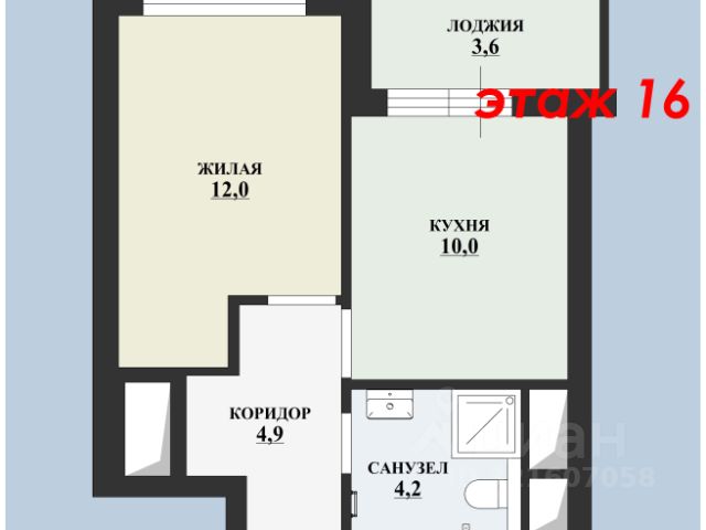 Продается 1-комн. квартира площадью 32 кв.м на 12 этаже 19 этажного дома в ЖК "Союзный" от федерального девелопера ГК "Вектор".