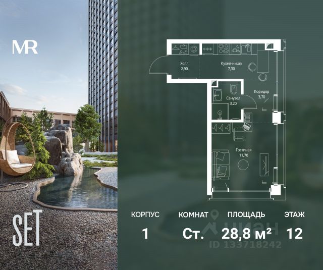Продаётся светлая квартира-студия площадью 33,3 м² в башне "Созидание" клубного дома "Кутузов Сити". Планировка квартиры позволяет легко трансформировать пространство под ваш образ жизни. В просторной комнате можно выделить отдельную спальную зону, обеденную зону, а также место для работы и отдыха. Зона кухни спроектирована так, чтобы в ней поместилась вся необходимая техника, и готовить было удобно. В зоне прихожей предусмотрена удобная гардеробная, а в ванной комнате достаточно места, чтобы разместить ванну или душ, а также стиральную машину. Окна с видом на город наполняют квартиру естественным светом. Высокие потолки придают пространству ощущение свободы и лёгкости. О проекте: "Кутузов Сити" — клубный дом на 220 квартир, разработанный совместно с бюро Atrium и Oleg Klodt Architecture & Design. Проект строится в престижном Западном административном округе Москвы, всего в нескольких минутах ходьбы от Кутузовского проспекта. Закрытая территория, приватный двор, подземный паркинг и стильные лобби создают атмосферу комфорта и безопасности. В двух шагах от дома находится крупнейшая природная территория Москвы — природный заказник "Долина реки Сетунь". Камерная застройка и развитая инфраструктура делают "Кутузов Сити" отличным выбором для тех, кто ценит качество жизни и близость к природе. (Лот: 145)