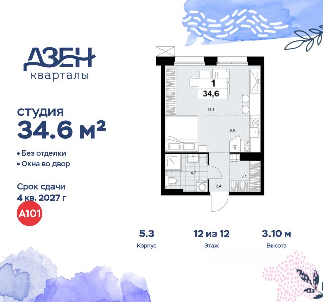 Продается студия, без отделки в ЖК "Новые Ватутинки. Квартал у реки". Общая площадь: 24.8 кв.м., жилая: 8.7 кв.м., площадь кухни: 7.3 кв.м. Этаж: 12. Район расположен всего в 14 километрах от МКАД по Калужскому шоссе, в центральной части Новой Москвы. Добраться сюда можно на автобусах и маршрутках от станций метро "Ольховая", "Теплый Стан" и "Бульвар Адмирала Ушакова". Время в пути от "Теплого Стана" и "Ольховой" занимает в среднем до 20 минут, даже в часы пик. В 2025 году рядом начнется строительство новой станции метро "Десна" (Троицкая линия), которая будет находиться в пешей доступности. Благодаря удачному расположению и развитой инфраструктуре Новые Ватутинки становятся одним из культурных и образовательных центров Новой Москвы. Строительство нового микрорайона началось с трех жилых корпусов, оснащенных подземными паркингами, индивидуальными кладовыми и коммерческими помещениями на первых этажах. Заречный имеет два удобных выезда на Калужское шоссе, что обеспечивает свободный проезд без заторов. В будущем жители также смогут пользоваться станцией метро "Десна", выбрав общественный транспорт. В районе предусмотрено строительство двух образовательных комплексов с детскими садами и школами, поликлиники и торгового центра Сквозь весь микрорайон — от будущей станции метро до набережной и парка "Андерсен" — протянется пешеходный бульвар длиной 1,5 км с уютными скверами, мини-площадями и садами. Архитектурная концепция предусматривает постепенное снижение этажности ближе к бульвару, создавая приятную для жизни и прогулок городскую среду. Принцип "город в гармонии с природой" реализован через дворы без машин и безбарьерное пространство на всей территории. Внутренние дворы будут предназначены для тихого отдыха и детских игр, а активные зоны разместятся на крупных плейхабах и в общественных пространствах. "Андерсен" станет центром активного досуга: здесь запланированы вело- и пешеходные маршруты, спортивные площадки, зоны для индивидуальных тренировок на свежем воздухе, а также места для рыбалки, сапбординга и тюбинга. Квартирный фонд отличается разнообразием планировок и продуманной эргономикой: просторные квартиры, большие лоджии, по две ванные комнаты. Свободные планировки позволят легко зонировать пространство под личные нужды — создать уютную спальню, рабочее место или гостиную. В цокольном этаже предусмотрены кладовые для хранения сезонных и крупных вещей, а также подземный паркинг с индивидуальными и семейными машино-местами. Спуститься к автомобилю можно прямо из квартиры — на лифте. Проект включает систему видеодомофонии: жители смогут получать уведомления о визитах гостей в режиме онлайн, открывать входную дверь удалённо, сохранять снимки с панели вызова, а также при желании — подключить наблюдение за камерами в лифтах через мобильное приложение. Выдача ключей в 2027г.