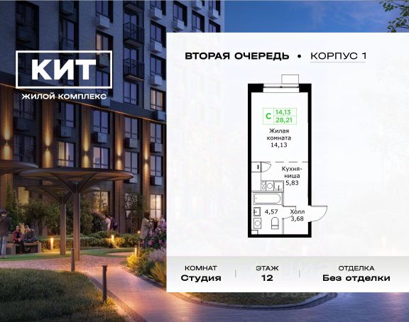 Продаётся студия 28.21 кв.м. без отделки в ЖК "КИТ2" на 12-м этаже 25 этажного дома.Жилой комплекс "Кит 2" спроектирован в урбанистической концепции "Город в Городе". Объект бизнес-класса предлагает рациональный подход к набору опций, необходимых для гармоничной жизни. Проект представляет собой два корпуса, которые образуют единую приватную территорию. Ее доминантой является двор с красивым ландшафтным дизайном и различными зонами, ориентированными на интересы жителей разного возраста. При создании пространства в приоритет ставился комфорт жителей. В шаговой доступности находятся: торговый центр, рестораны, кинотеатры, спортивный зал, образовательные учреждения и множество других объектов в сфере услуг. Преимущества проекта: - 3 корпуса для приватной жизни - Видовые характеристики (просматриваются Москва - Сити и Останкинская телебашня) - Широкая квартирография по всем типам квартир - Увеличенное остекление - 3 варианта отделки: БОРДО, СТОКГОЛЬМ, ОСЛО - Богатая развлекательная инфраструктура - Высокий уровень безопасности территории Расположение комплекса: - 2,2 км до Волковского шоссе - 2,8 км до Ярославского шоссе - 5,7 км до МКАД - 5 минут пешком до ж/д станции "Мытищи" и Автовокзала - 18 минут до станции метро "Комсомольская" - 30 минут до станции метро "Медведково"