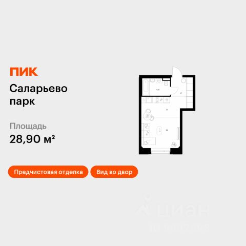 Продается квартира-студия без отделки в 9 фазе города-парка "Первый Московский". Общая площадь квартиры - 26,5 кв. м, этаж 12 из 19. Срок сдачи - 4 квартал 2026 года. Тип дома - монолитный. Цена указана при 100% оплате. Новый корпус состоит из 2х секций, без отделки. Город-парк "Первый Московский" расположен всего в 7 км по Киевскому шоссе (Новая Москва). Из города-парка прямой выезд на Киевское шоссе и трассу Солнцево-Бутово-Варшавское шоссе. ТРАНСПОРТНАЯ ДОСТУПНОСТЬ: - 5 мин. на личном автомобиле или 10 мин. на автобусе 189, 147, 193 до станции метро "Филатов Луг" - 5 мин. на личном автомобиле или 12 мин. на автобусе 863 до станции метро "Саларьево" - 6 мин. на личном автомобиле или 15 мин. на автобусе 333 до станции метро "Рассказовка" РАЗВИТАЯ ИНФРАСТРУКТУРА В ОКРУЖЕНИИ: - общеобразовательная школа 2120 корпуса д1, д7, ш1-ш5 - детский сад 2120 корпуса д2, д9 - школа искусств - городская больница, детская поликлиника, филиал 5 - подстанция скорой помощи 58 и пожарно-спасательный центр 313 - отдел полиции, отдел ГИБДД - торговые центры Столица и Новомосковский - стадион, каток, бассейн - кафе, продуктовые магазины, аптеки, фитнес центры, салоны красоты и пр. БЛАГОУСТРОЙСТВО: - детская площадка для малышей и детей до 12 лет - места отдыха для родителей в непосредственной близости - озеленение территории с учетом зонирования - максимальная близость корпуса к пару Филатов луг ОСОБЕННОСТИ АРХИТЕКТУРЫ: - безбарьерные входные группы - колясочные в каждой входной группе - коммерческие помещения на 1 этаже в двух секциях - кладовые помещения расположены на жилых этажах и на -1 этаже - в каждой секции корпуса по 3 лифта: 2 пассажирских, 1 грузовой - на фасадах предусмотрены корзины для установки внешних блоков кондиционеров - видеонаблюдение установленное в холлах первых этажей, у подъездов и прилегающей территории АВТОРСКИЙ ДИЗАЙН: Входные группы выполнены по авторскому дизайну, оснащены системой "тёплый пол". В каждой входной группе будет располагаться комфортабельная зона ожидания, почтовые ящики с ячейкой для спама, колясочная, акцентные пуфы и столик.