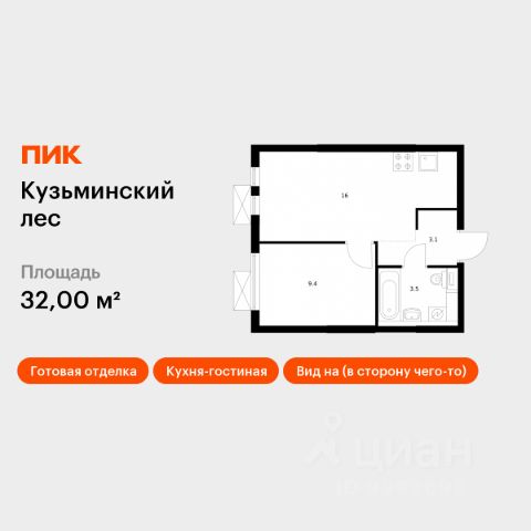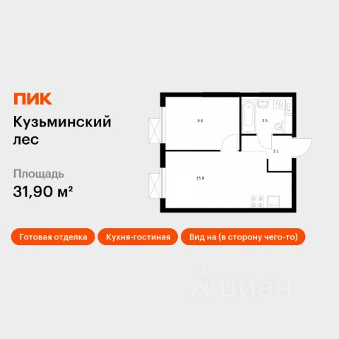 Продаётся 1-комн. квартира площадью 31,9 кв.м на 17 этаже 25 этажного дома (Корпус 9, Секция 1) проекта ПИК Кузьминский лес. Светлый просторный подъезд на уровне земли, функциональная планировка, большие окна, c отделкой. Жилой квартал "Кузьминский лес" находится в Московской области, в городе Котельники. Отсюда за 18 минут можно дойти до метро "Котельники", а за 5 минут — доехать на машине до МКАД. В проекте — жилые дома с уютными дворами, школа, детский сад, подземные и гостевые паркинги. Вокруг — развитый район с детскими садами, школами и поликлиниками. Рядом есть стадион, "МЕГА Белая Дача" и гипермаркеты Selgros, Castorama и Real. Отдохнуть от городской жизни можно в Кузьминском парке и усадьбе "Белая Дача", которые совсем недалеко от "Кузьминского леса". Артикул 581938 (Застройщик АО "Компания АТОЛ")