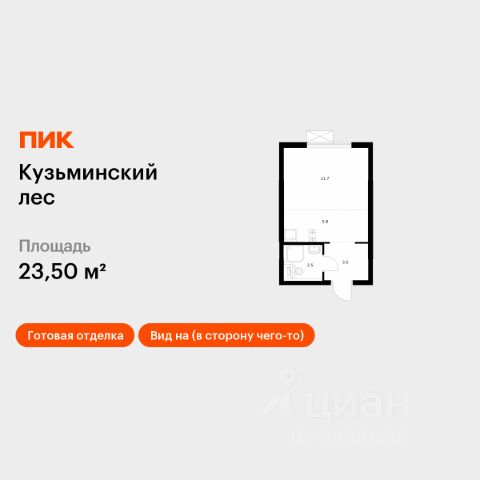 Продаётся квартира-студия площадью 23,5 кв.м на 23 этаже 25 этажного дома (Корпус 9, Секция 1) проекта ПИК Кузьминский лес. Светлый просторный подъезд на уровне земли, функциональная планировка, большие окна, c отделкой. Жилой квартал "Кузьминский лес" находится в Московской области, в городе Котельники. Отсюда за 18 минут можно дойти до метро "Котельники", а за 5 минут — доехать на машине до МКАД. В проекте — жилые дома с уютными дворами, школа, детский сад, подземные и гостевые паркинги. Вокруг — развитый район с детскими садами, школами и поликлиниками. Рядом есть стадион, "МЕГА Белая Дача" и гипермаркеты Selgros, Castorama и Real. Отдохнуть от городской жизни можно в Кузьминском парке и усадьбе "Белая Дача", которые совсем недалеко от "Кузьминского леса". Артикул 931437 (Застройщик АО "Компания АТОЛ")