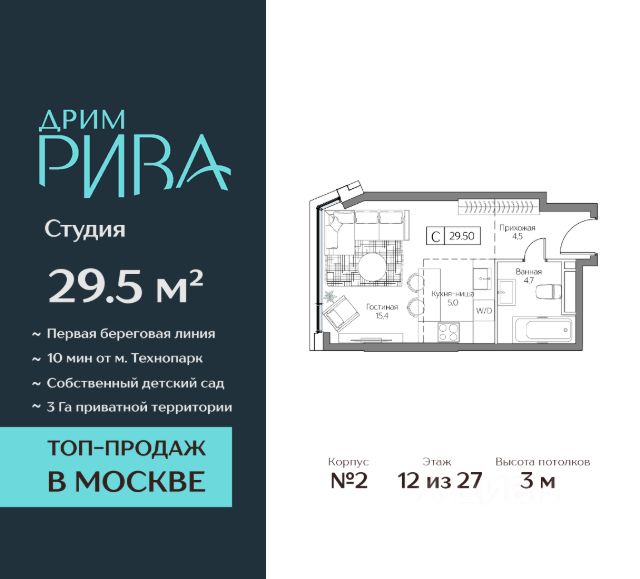 Студия площадью 28,3 м2. Высота потолков 3,48 м. Этаж 12 из 42. О проекте АУРА новая премиальная доминанта Москвы в 10 минутах от Садового кольца. Проект состоит из 42-этажной Бронзовой башни и 41-этажной Серебряной. Рядом набережная Москвы-реки, Даниловский рынок, музеи и галереи, престижные школы и вузы. Двор и благоустройство Приватная территория АУРЫ состоит из нескольких функциональных зон для тихого отдыха, работы и активного времяпровождения на свежем воздухе. На нижнем уровне расположены детские и спортивные площадки, скалодром и крытый павильон для подвижных игр. Выше — амфитеатр для отдыха и вечерних променадов, уличный коворкинг с мебелью и лаунж-зоны с лежаками у воды. На крыше — тихий уголок для занятий йогой, встречи рассветов и наслаждения закатами. По всему двору проложены пешеходные дорожки с подогревом в зимний сезон. Придомовую территорию АУРЫ украсит уникальный для Москвы объект — скала из натурального камня с водопадом, которая станет новой городской достопримечательностью. Эксклюзивная инфраструктура Только для резидентов: • Бьюти-комната • Коворкинг, переговорные и акустические кабинеты • Детская игровая комната • Спортзал и студия для тренировок • Просторные колясочные • Сервисная комната • Лапомойки для домашних питомцев Инфраструктура в составе проекта: • Ресторан авторской кухни • Современная медицинская клиника • Частный детский сад • Бизнес-центр класса "А" • Коммерческие помещения, закрывающие любые потребности — супермаркет, химчистка и др. Атрибуты комфорта • Индивидуальная вентиляция квартир • Вентиляция с очисткой воздуха в общих зонах • Мультизональное центральное кондиционирование (VRF) • Горячая вода круглый год • Вода качества, сопоставимого с питьевой • Усиленная звукоизоляция квартир Входные группы • Гранд-лобби в стиле современной роскоши • Дизайнерские лобби в каждой башне • Панорамное остекление Квартиры Более 40 планировок: от уютных студий до просторных семейных лотов. Всего 916 квартир площадью от 28,1 до 148,8 м². Высота потолков от 3,16 до 6,2 м. Уникальные планировки: • Квартиры с террасами • Квартиры с окном в ванной • Квартиры с круговым остеклением • Двухуровневые пентхаусы Паркинг и келлеры Двухуровневый подземный паркинг на 563 парковочных места: • Постоянные места: 496 (в том числе 48 мест для маломобильных) • Гостевые места: 67 • Персональные кладовые и велостанция • Мойка автомобилей • Станция для подкачки шин • Зарядки для электромобилей • Зона для разгрузки крупногабаритных предметов Интеллектуальные системы • Персональный бесконтактный доступ на территорию и в здание по электронному ключу (Bluetooth/RFID) • Премиальные лифты Mitsubishi • Автоматический въезд на паркинг для резидентов по распознаванию номеров • Круглосуточное видеонаблюдение с возможностью push-уведомлений • Система датчиков для круглосуточного мониторинга • Усиленный сигнал связи — стабильный прием сотовой связи и интернета на всей территории Сервис • Управляющая компания девелопера • Ко