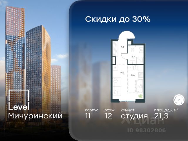 Прямая продажа от застройщика. Продаётся студия общей площадью 22.70 м² с предчистовой отделкой в ЖК VEER на 12-м этаже 59 этажного дома. Жилой комплекс бизнес-класса VEER от компании MR — это футуристичный мультиквартал, расположенный в престижной локации на западе Москвы. Благодаря переменной высоте башен — двух 22-этажных, 46-этажной и двух 59-этажных — возникает динамичность в силуэте комплекса, а его яркий образ вносит разноплановость в архитектурный пейзаж района. Расположение и транспортная доступность: • VEER удобно расположен в непосредственной близости от Кутузовского проспекта, обеспечивая быстрый доступ к центральным районам Москвы • Комплекс находится непосредственно напротив самого большого природного заказника в Москве - парка "Долина реки Сетунь", а за семь минут можно доехать до памятника садово-паркового искусства, Троекуровского леса. • Всего в 15 минутах - центр города, самая престижная бизнес-школа управления России "Сколково", дом творчества "Переделкино". • 18 минут пешком до м. "Давыдково" • Открытие новых станций метро в шаговой доступности в будущем Инфраструктура: Разнообразить свой день резиденты VEER смогут также проводя больше времени на свежем воздухе. Двор разделен на 4 зоны разных эмоций и действий, которые пересечены и соединены веерными прогулочными маршрутами: • Спортивная площадка устроена в глубине "Кленовой рощи" • В "Чайном домике" будет создан навес с утеплением для отдыха в любую погоду • Площадки для детей воплотятся в "Волшебный лес" с цветами, зеркалами и световым дизайном • "Центральная площадь" устроена у водного оазиса живописного пруда. Компания MR предлагает своим клиентам специальные условия приобретения квартир в рамках программ ипотечного кредитования от банков-партнеров.