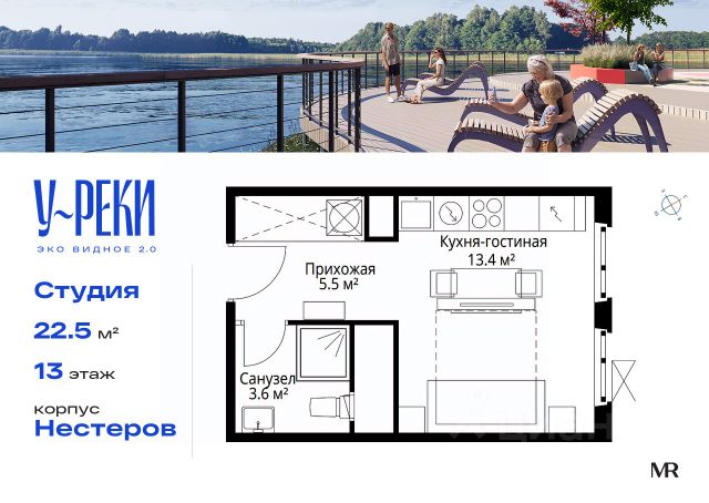 Прямая продажа от застройщика. Продаётся студия общей площадью 24.20 м² с предчистовой отделкой в ЖК "У реки. Эко Видное 2.0" на 13-м этаже корпуса Нестеров. Все корпуса введены в эксплуатацию. Выдача ключей - I кв. 2025г. Жилой комплекс "У реки" - уникальный проект комфорт-класса, в котором применяются стандарты строительства и сервиса MR, характерные для проектов девелопера бизнес и премиум-классов. 17-этажный корпус "Нестеров" расположится на живописном берегу реки Купелинка. Из его квартир откроются захватывающие виды на реку и лес на её противоположном берегу. О проекте: - 5 корпусов переменной этажности; - 8 км от МКАД, 30 минут до метро "Домодедовская", в 2025 года запланировано открытие станции МЦД-5 (дорога по Павелецкого вокзала займёт 30 минут); - Безопасные дворы с детскими и спортивными площадками для разных возрастов; - Собственная набережная с променадом, местами для пикников и рыбалки; - Два детских сада и школа на территории; - Развитая инфраструктура района; - Отделка MR Base (white box) Компания MR предлагает своим клиентам специальные условия приобретения квартир в рамках программ ипотечного кредитования от банков-партнеров.