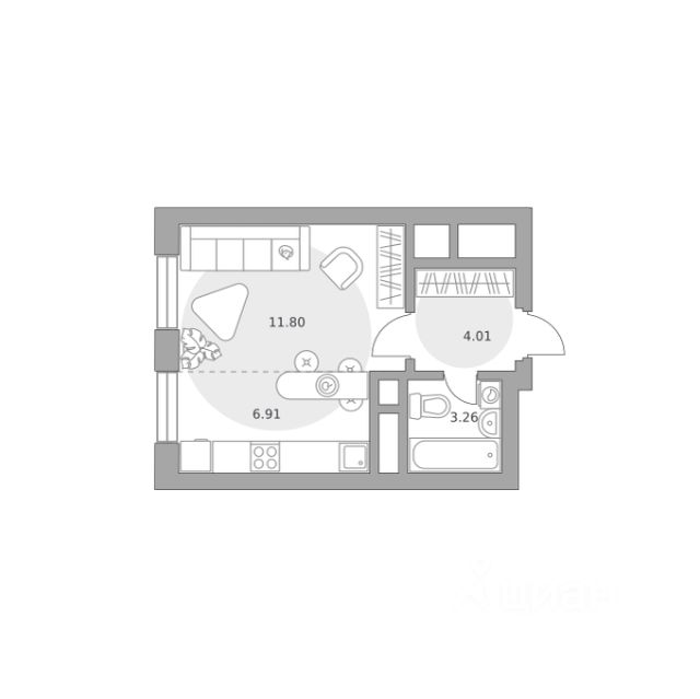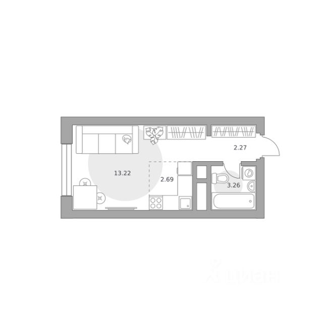 Продаётся студия 630, площадью 25,98 м², на 13 этаже в ЖК "Ильинойс" корпус 3. Стоимость — от 6911817 руб. Квартира без отделки, планировка односторонняя, окна на улицу.