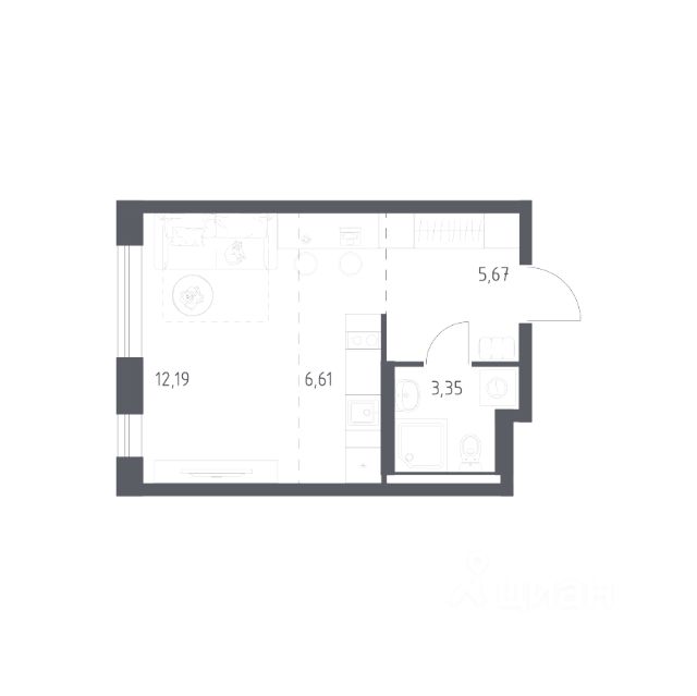 Продаётся студия 182, площадью 28,91 м², на 13 этаже в ЖК "Новая Алексеевская роща" корпус 4. Стоимость — от 5767250 руб. Квартира без отделки, планировка односторонняя, окна во двор.