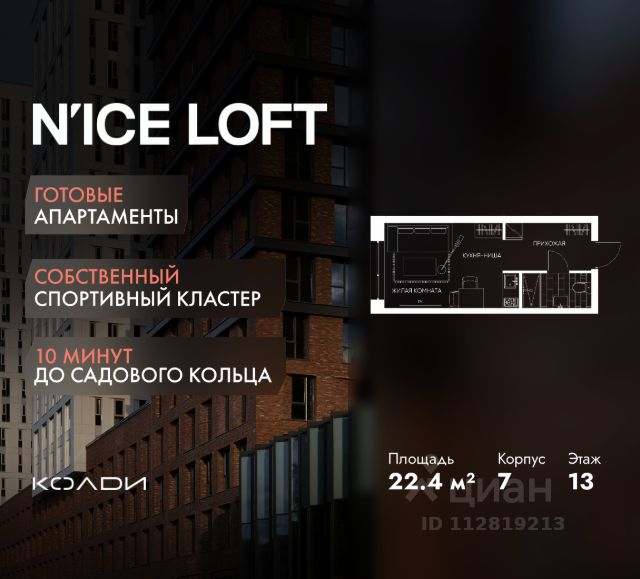 Стильный лофт 26,5 м² в бизнес-классе Nice Loft — Ключи на руках! Продается уютная студия-апартаменты в одном из самых концептуальных комплексов Москвы — Nice Loft. Это место для тех, кто ценит эстетику индустриального стиля и комфорт бизнес-класса. О студии: Площадь: 26,5 м² — идеальный формат для одного человека или стильной базы в Москве. Планировка: Свободное пространство, которое легко зонируется под ваши задачи. Окна: Высокие потолки и панорамное остекление наполняют студию светом. О комплексе: Nice Loft — это не просто дом, это полноценный спортивный и бизнес-кластер. Собственная инфраструктура: ледовые арены, фитнес-центры, коворкинги. Закрытая охраняемая территория и дизайнерские лобби. Транспорт: 7-10 минут пешком до станции МЦК Новохохловская, удобный выезд на ТТК. Один взрослый собственник, быстрый выход на сделку. Звоните, чтобы записаться на просмотр!