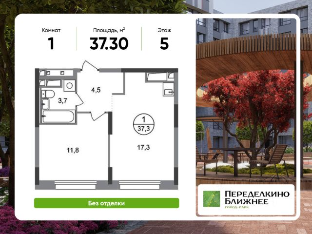 Продается квартира-студия в городе-парке "Переделкино Ближнее". Общая площадь квартиры - 26,5 кв. м, этаж 13 из 17. Срок сдачи - 3 квартал 2028 года. Тип дома - монолитный. Корпус расположен в новой 13 фазе строительства и состоит из 6 секций с переменной этажностью 12-17 этажей. Все секции с отделкой White Box с возможностью повышения за дополнительную плату до дизайнерской отделки: Classic или Smart+ Около 13 фазы запланировано строительство многоуровневого паркинга на 300 м/мест. 13 фаза имеет уникальное расположение и находится непосредственно на берегу Федосьинского пруда, который является сердцем города-парка "Переделкино Ближнее". Город-парк "Переделкино Ближнее" расположен в 8 км от МКАД по Боровскому шоссе. ТРАНСПОРТНАЯ ДОСТУПНОСТЬ: - 15 минут пешком до станции МЦД-4 "Мичуринец" - 25 минут пешком до станции метро "Рассказовка" Солнцевской линии - 30 минут до центра Москвы - 2026 г. - открытие трассы Солнцево-Бутово-Варшавское шоссе РАЗВИТАЯ СОЦИАЛЬНАЯ ИНФРАСТРУКТУРА: - 7 детских садов, 3 школы - банки, продуктовые магазины, аптеки, фитнес центры, салоны красоты и пр БЛАГОУСТРОЙСТВО: - дворы без машин - игровые зоны и развивающие детские площадки - зоны для созерцательного и медитативного отдыха - зоны для занятий спортом ОСОБЕННОСТИ АРХИТЕКТУРЫ: - высокие потолки от 3,03 м - безбарьерные входные группы - колясочные в каждой входной группе - кладовые помещения расположены на -1 этаже каждой секции - в каждой секции 2 лифта: 1 пассажирский, 1 грузовой - на фасаде предусмотрены корзины для установки кондиционеров АВТОРСКИЙ ДИЗАЙН: Входные группы выполнены по авторскому дизайну, благодаря панорамному остеклению наполнены естественным светом. В каждой входной группе будет располагаться комфортабельная зона ожидания с возможностью зарядить электронные устройства, почтовые ящики, колясочная, акцентные пуфы и столик.