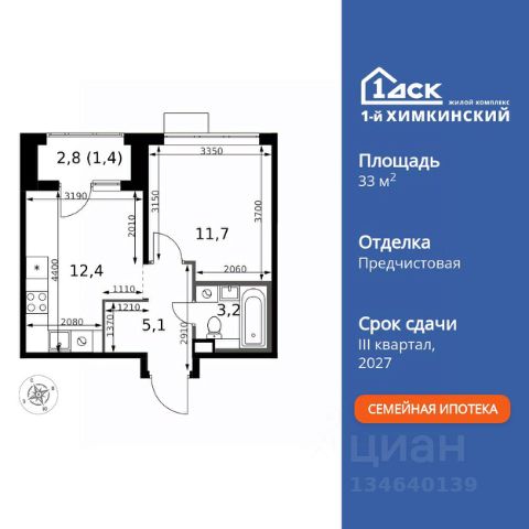 БЕЗ ПЕРВОНАЧАЛЬНОГО ВЗНОСА! • ИПОТЕКА 10% ДЛЯ ВСЕХ БЕЗ НАЦЕНОК • ДОСТУПНО ПО СЕМЕЙНОЙ ИПОТЕКЕ Прямая продажа от застройщика! Жилой Комплекс класса Комфорт. Продаётся квартира-студия номер 178 общей площадью 23.5 кв.м. на 14-м этаже 17 этажного здания. Отделка Whitebox. Цена с учётом скидки. Особенности квартиры: - Линейная планировка - максимальная функциональность и удобство. - Увеличенное количество окон - дополнительное освещение и свежий воздух. - Линейная кухня - функциональность и практичность в одном решении. - Ниша под шкаф - компактное и удобное место для вещей. Квартира с предчистовой отделкой (White box). Вам не придется заниматься черновыми и трудоёмкими работы, а чистовую отделку и дизайн - сделайте на свой вкус. Информация о комплексе: Квартал класса комфорт плюс, где современное городское пространство граничит с удивительной природой вокруг. 1-й Химкинский расположен на территории в 102 га и органично вписан в природное окружение Химкинского леса и канала им. Москвы. В проекте предусмотрена богатая коммерческая инфраструктура с собственным торговым центром, общеобразовательные учреждения и социальные объекты. Изюминкой жилого комплекса будут спортивно-оздоровительный комплекс с термами и SPA и семейный парк развлечений. Транспортная доступность: ЖК "1-й Химкинский" дает возможность выбрать любой способ передвижения как до города, так и до самых разных объектов, которые могут представлять интерес для его жителей. Не важно, какой способ передвижения вы предпочитаете, успевать всегда и везде можно вне зависимости от выбора транспорта. - 8 мин. пешком (800 м) до остановки "Золотая Арка" -10 мин пешком (1 км) до остановки "Поворот на Ивакино" Внутренняя инфраструктура: - Безопасность: закрытые дворы без машин, безбарьерная среда и сквозные подъезды, камеры на детских площадках с возможностью трансляции на смартфоне - Идеальный отдых в кругу семьи: семейный парк развлечений на территории, торговый центр (2-х этажный) общей площадью более 8 тыс. кв. м с фудкортом - Образование: 3 детских сада и современная муниципальная школа на 2450 мест - Спортивная среда: закольцованный веломаршрут с навигацией, спортивный комплекс с термами, закрытый тренажерный зал и зоны ворк-аута - Социальные объекты: поликлиника со станцией скорой помощи, пожарное депо - Подземный паркинг и кладовые помещения на -1 этаже, станция техобслуживания и автомойка на территории