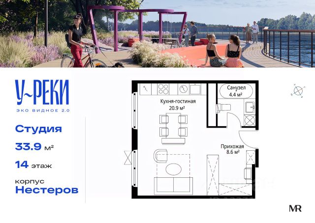 Продажа квартир-студий на 14 этаже рядом с метро Красногвардейская
