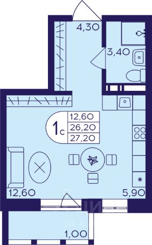 Продаётся студия в сданном доме (Безымянная, 16 (Север, корпус 23)), срок сдачи: IV-кв. 2023, общей площадью 22.44 кв.м., на 14 этаже. Расположение, транспортная доступность
