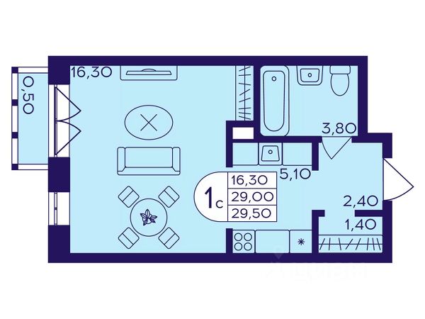 Квартира площадью 32 кв. м впечатляет грамотной планировкой: просторная комната в 15 кв. м, отдельная кухня в 10 кв. м и совмещенный санузел. Выполнен качественный евроремонт, квартира полностью меблирована, включая кухонный гарнитур, что позволяет заселиться сразу после сделки. Большим преимуществом является балкон с видом на спокойный двор, куда выходят окна. Высокие потолки 2.7 метра и девятый этаж из семнадцати обеспечивают обилие света и воздуха.