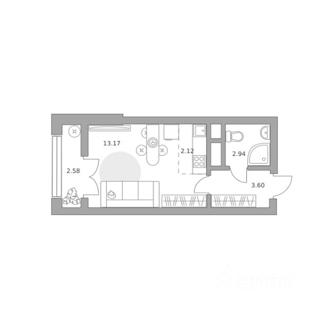 Продаётся студия 1102, площадью 24,41 м², на 14 этаже в ЖК "Пехра" корпус 1. Стоимость — от 6495667 руб. Квартира с отделкой, планировка односторонняя, окна во двор.