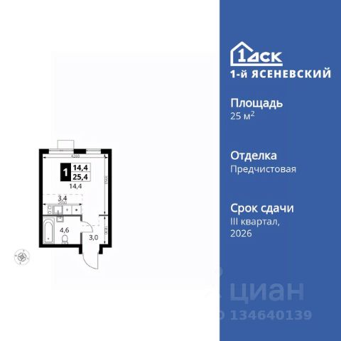 ТОЛЬКО 4 ДНЯ ДО 10.02 • Дополнительная скидка 10% • Ставка 10% по стандартной ипотеке для всех без наценок • Ставка 3,5% по семейной ипотеке Успейте купить выгодно! Прямая продажа от застройщика! Жилой Комплекс класса Комфорт Плюс. Продаётся квартира-студия номер 255 общей площадью 27.1 кв.м. на 14-м этаже 16 этажного здания. Отделка Whitebox. Особенности квартиры: - Квартиры рядом с метро - м. Корниловская 9 мин пешком - 63 га лесопарка за окнами - Школа c it-кластером и бассейном. 2 детских сада - Линейная планировка - максимальная функциональность и удобство. - Увеличенное количество окон - дополнительное освещение и свежий воздух. - Ниша под шкаф - компактное и удобное место для вещей. Квартира с предчистовой отделкой (White box). Вам не придется заниматься черновыми и трудоёмкими работы, а чистовую отделку и дизайн - сделайте на свой вкус. Информация о комплексе: В жилом комплексе комфорт-плюс класса "1-го Ясеневского" доступны преимущества двух стилей жизни. Ведь в пешей доступности метро, школа с 25-метровым бассейном и IT-кластером и при этом целых 63 га благоустроенного Троицкого лесопарка под окнами, где так приятно дышать свежим воздухом и слушать пение птиц. Собственная закрытая территория "1-го Ясеневского" представляет собой уютный оазис. Здесь и зеленый освещенный бульвар для прогулок, система велодорожек, маленькая городская площадь, кафе, пекарни и кофе поинты. А еще дворы без машин и многоэтажная парковка. Изюминка территории - фруктовые деревья во дворах и городские сады. "1-й Ясеневский" - всего в 1 км от МКАД, на территории новой Москвы. Жилой комплекс, где есть все необходимое для современного человека. Транспортная доступность: До метро "Корниловская" - 12 минут пешком До метро "Тютчевская" - 25 минут пешком До метро "Теплый стан" - 10 минут на транспорте До метро "Ольховая" - 30 минут на общественном транспорте Личный автотранспорт: Выезд на Калужское шоссе - 500 м МКАД - 1 км Внутренняя инфраструктура: ЖК "1-й Ясеневский" можно назвать идеальным местом для жизни семьи с детьми. Здесь буквально за домом находится Троицкий лесопарк - излюбленное место прогулок молодых родителей. А во внутренних дворах под детские площадки выделены специальные зоны. Они оборудованы всем, что нужно для счастливого детства: современными и максимально безопасными качелями, песочницами и лазалками. Оборудование и игровые сценарии на детских площадках спроектированы вместе с командой детских психологов для правильного развития ребенка и для повышения их интереса. Также рядом с домом два детских садика, один из которых уже построен и школа на 1100 мест. Школу по праву можно назвать образцовым учебным заведением. В ней закладываются основы успешного будущего. Здесь есть класс робототехники, IT-кластер, 25-метровый бассейн и прекрасно оборудованные спортзалы.
