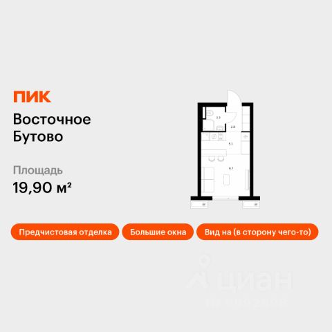 Продаётся квартира-студия площадью 27,7 кв.м на 14 этаже 15 этажного дома (Корпус 48, Секция 3) проекта ПИК Восточное Бутово. Светлый просторный подъезд на уровне земли, функциональная планировка, большие окна, предчистовая отделка. Жилой квартал "Восточное Бутово" расположен в 5 км от МКАД по Симферопольскому шоссе, в Ленинском районе Московской области. Это экологически благоприятное место по соседству с Бутовским лесопарком. В 25 минутах на машине - станции метро и МЦД "Бутово". В "Восточном Бутово" уже открылись пять детских садов из десяти запланированных и одна школа из четырёх. Внутри квартала будет две поликлиники, одна из которых уже работает. В проекте два пешеходных бульвара - по одному из них уже можно гулять и кататься на велосипеде. В закрытых дворах-парках не будет автомобилей - мы построим многоуровневый паркинг, чтобы сделать район ещё более комфортным и безопасным для жителей. Артикул 1012957 (Застройщик ООО "Лотан")