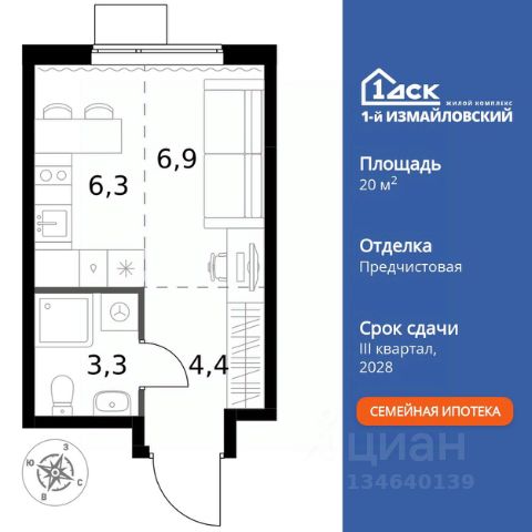 Просторная студия для молодой семьи. Общая площадь - 28.1м2, удобная планировка, кухня 5м2. Панорамные виды из окон на две стороны - на национальный парк "Лосиный остров" и благоустроенный внутренний двор. Условия покупки: - Скидка при полной оплате - 10% - Ипотека от 3,5% на весь срок или 0,11% на первый год - Рассрочка без процентов - Trade-in с проживанием на время строительства дома НАЗАРЕ - шесть домов бизнес-класса высотой 24-43 этажа. Проект расположен рядом с национальным парком "Лосиный остров" и парком "Сокольники". В продаже квартиры с мастер-спальнями, кухнями-гостиными, открытыми террасами, просторными кладовыми и ванными с окном. Форматы - от светлых студий 21,6 м2 до семейных 4-комнатных 125,5 м2. Часть лотов - с предчистовой отделкой White Box. Транспортная доступность: - Метро "Бульвар Рокоссовского" и МЦК - 2 мин. пешком - Северо-Восточная хорда - 3 мин. на автомобиле - Третье транспортное кольцо - 15 мин. на автомобиле - Садовое кольцо - 18 мин. на автомобиле Инфраструктура: В составе проекта появится собственный детский сад и торгово-развлекательный центр с акцентом на шопинг и досуг. На первых этажах домов откроются кафе, пекарни, магазины и службы сервиса. В районе Богородское находятся престижные школы, медцентры, магазины и спортивные клубы.
