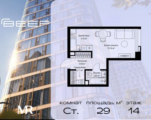Продаётся светлая квартира-студия площадью 33,3 м² в башне "Созидание" клубного дома "Кутузов Сити". Планировка квартиры позволяет легко трансформировать пространство под ваш образ жизни. В просторной комнате можно выделить отдельную спальную зону, обеденную зону, а также место для работы и отдыха. Зона кухни спроектирована так, чтобы в ней поместилась вся необходимая техника, и готовить было удобно. В зоне прихожей предусмотрена удобная гардеробная, а в ванной комнате достаточно места, чтобы разместить ванну или душ, а также стиральную машину. Большие окна с видом на город наполняют квартиру естественным светом. Высокие потолки придают пространству ощущение свободы и лёгкости. О проекте: "Кутузов Сити" — клубный дом на 220 квартир, разработанный совместно с бюро Atrium и Oleg Klodt Architecture & Design. Проект строится в престижном Западном административном округе Москвы, всего в нескольких минутах ходьбы от Кутузовского проспекта. Закрытая территория, приватный двор, подземный паркинг и стильные лобби создают атмосферу комфорта и безопасности. В двух шагах от дома находится крупнейшая природная территория Москвы — природный заказник "Долина реки Сетунь". Камерная застройка и развитая инфраструктура делают "Кутузов Сити" отличным выбором для тех, кто ценит качество жизни и близость к природе. (Лот: 157)