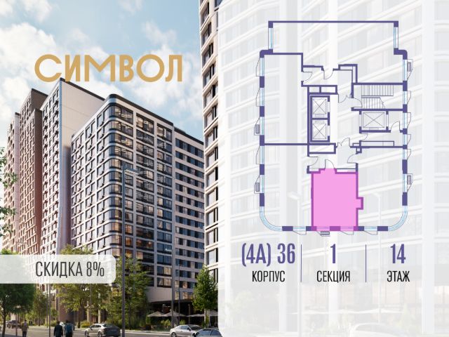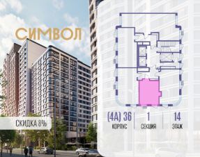 Квартира расположена на 14 этаже 32-этажного монолитного дома, срок передачи ключей до 31.12.2027 года.