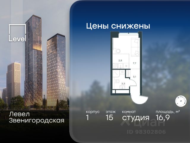 • ✓ В базе Циан 12 квартир-студий на 15 этаже в районе Хорошево-Мневники в Москве
