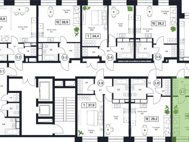Квартира удобной планировки, не пенал, есть возможность зонирования на кухонную и жилую зоны!