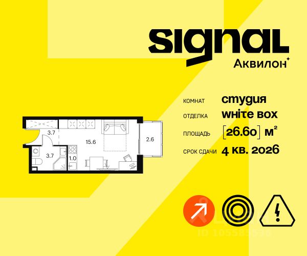 Продажа от застройщика. Продается уютная студия на 15 этаже 23-этажного современного апарт-комплекса Signal. Срок сдачи: 4 кв. 2026 г. Отделка: Апартаменты передаются в предчистовой отделке white box. Возможен заказ чистовой отделки. Мы выполним все инженерные и черновые отделочные работы, оставив вам самое приятное - создание индивидуального интерьера и неповторимого уюта. А если отпраздновать новоселье хочется как можно скорее, вы сможете заказать чистовую отделку в одном из двух цветовых вариантов: Beigestone или Greystone. Вам останется только завезти мебель и начать наслаждаться жизнью в SIGNAL. Расположение: ЖК Signal расположен на перекрестке столичных маршрутов. По Сигнальному проезду легко выехать на Алтуфьевское шоссе, СВХ и проспект Мира. Транспортная доступность: - 3 минуты пешком до станции Владыкино - 15 минут на автомобиле до ТТК - Ботанический сад в 10 минутах ходьбы Внутренняя инфраструктура Signal: - Фитнес-центр на первом этаже - Игровая площадка и приватном дворе - Коворкинг и уединенные зоны для работы - Торговая галерея Преимущества: - SoundStop - Система защиты от шума, дополнительная шумоизоляция - Система умного дома InHome 3.0 - управление домом нажатием нескольких кнопок - Система Termo-S, позволяющая сэкономить на оплате теплоснабжения - Фитнес-зал позовлит поддерживать себя в форме - Лаунж-зоны, где можно расслабиться - Лобби-бар с большим выбором напитков и закусок - Гостиничный сервис и консьерж reception 24/7 для решения бытовых задач - Апартаменты обслуживает профессиональная управляющая компания - Арт-объекты во дворах для стильного контента Signal - это дом, - чья молодость духа и бодрый настрой заряжают всех, независимо от возраста - который задает абициозную планку с самого начала карьеры - где живут интересные события и встречаются хорошие люди