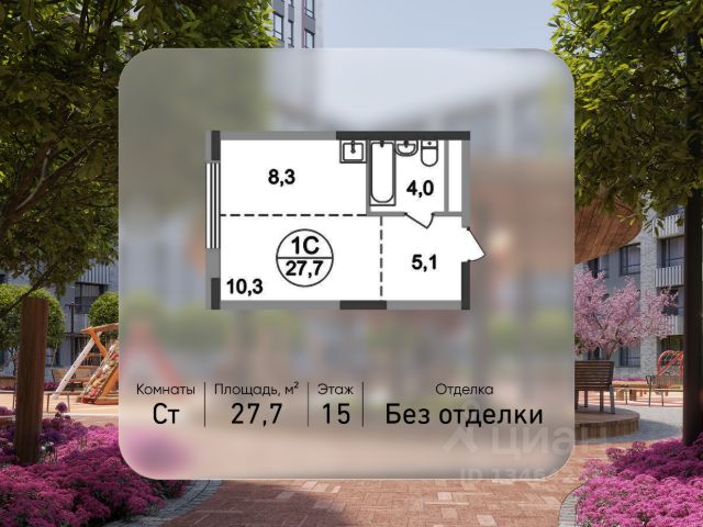 Продается квартира-студия без отделки в городе-парке "Переделкино Ближнее". Общая площадь квартиры - 27,7 кв. м, этаж 15 из 17. Срок сдачи - 1 квартал 2028 года. Тип дома - монолитный. ТОЛЬКО ДО 30 АПРЕЛЯ выгодные условия на приобретение квартиры в ипотеку или рассрочку. Звоните - и мы подберем оптимальное предложение под ваш запрос! Корпус расположен в 13 фазе строительства и состоит из 8 секций с переменной этажностью 12-17 этажей. Все секции без отделки. Около 13 фазы запланировано строительство многоуровневого паркинга на 300 м/мест. 13 фаза имеет уникальное расположение и находится непосредственно на берегу Федосьинского пруда, который является сердцем города-парка "Переделкино Ближнее". Город-парк "Переделкино Ближнее" расположен в 8 км от МКАД по Боровскому шоссе. ТРАНСПОРТНАЯ ДОСТУПНОСТЬ: - 15 минут пешком до станции МЦД-4 "Мичуринец" - 25 минут пешком до станции метро "Рассказовка" Солнцевской линии - 30 минут до центра Москвы - 2026 г. - открытие трассы Солнцево-Бутово-Варшавское шоссе РАЗВИТАЯ СОЦИАЛЬНАЯ ИНФРАСТРУКТУРА: - 7 детских садов, 3 школы - банки, продуктовые магазины, аптеки, фитнес центры, салоны красоты и пр БЛАГОУСТРОЙСТВО: - дворы без машин - игровые зоны и развивающие детские площадки - зоны для созерцательного и медитативного отдыха - зоны для занятий спортом ОСОБЕННОСТИ АРХИТЕКТУРЫ: - высокие потолки от 3,03 м - безбарьерные входные группы - колясочные в каждой входной группе - кладовые помещения расположены на -1 этаже каждой секции - в каждой секции 2 лифта: 1 пассажирский, 1 грузовой - на фасаде предусмотрены корзины для установки кондиционеров АВТОРСКИЙ ДИЗАЙН: Входные группы выполнены по авторскому дизайну, благодаря панорамному остеклению наполнены естественным светом. В каждой входной группе будет располагаться комфортабельная зона ожидания с возможностью зарядить электронные устройства, почтовые ящики, колясочная, акцентные пуфы и столик.