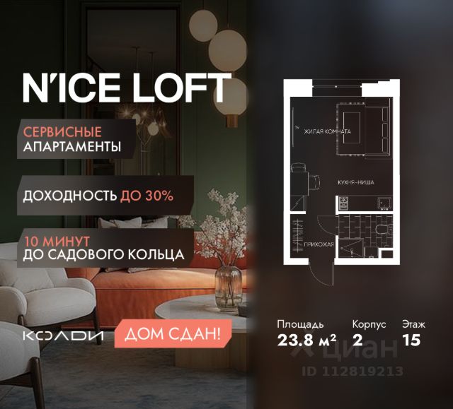 В динамично развивающемся районе Москвы, всего в 300 метрах от метро и в пешей близости от нового городского порта с протяженной набережной 13 км, свободной от автомобилей, продается студия площадью 29.40 м². без отделки. Квартира находится в корпусе жилого комплекса бизнес-класса "Адмирал", расположенного по адресу г. Москва, ул. Шоссейная, 4Д. (Застройщик - "Галс Девелопмент"). Новый амбициозный проект "Адмирал" станет частью одного из самых перспективных районов будущего - "Сити-2". В пешей доступности от современных башен Вас ждут живописные Люблинские пруды, 2 усадьбы с уникальной историей и уютный парк "Печатники" у Перервинского плёса. Район имеет отличную транспортную доступность: • 300 метров до станции метро "Печатники"; • Удобная пересадка на БКЛ и станцию МЦД-2; • 10 минут на машине до ТТК; • 15 минут до Садового кольца. Архитектура корпусов отличается динамичностью облика благодаря переменной этажности: высокие башни сочетаются с домами средней этажности. Изящным украшением становятся арочные витражи. Интеллигентный и современный стиль "Адмирала" продолжается в гранд-лобби: пастельные оттенки интерьера и фактурные элементы декора создают атмосферу безмятежного отдыха, особое ощущение простора дарят высокие потолки до 4 м и витражные окна. В домах предусмотрено от трех до шести скоростных лифтов, каждый из них спускается на любой этаж подземного паркинга и обладает удобными сенсорными панелями управления и низким уровнем шума. Благоустроенный двор площадью 5000 кв.м. украсят десятки видов гипоаллергенных растений. Здесь можно совершить приятный променад, по пути заглядывая за свежезаваренным кофе, уединиться за ноутбуком в комфортном коворкинге, занять ребенка играми в двухъярусном плейхабе или помедитировать на специальной площадке для йоги. Мягкий свет декоративных фонарей подчеркнет живописность местности, а чувство безопасности гарантируют круглосуточные системы видеонаблюдения. Дополнительные преимущества: • Высокие потолки от 2,9 до 3,25 м; • Бизнес-центр, школа и детский сад прямо на территории дома; • Подземный двухуровневый паркинг на 1955 машино-мест; • Кладовые помещения в тёплом контуре на 2м этаже; • Стрит-ритейл на первых этажах.