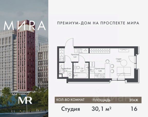 Прямая продажа от застройщика. Продаётся студия общей площадью 30.06 м² без отделки в доме премиум-класса МИRА на 16-м этаже 23 этажного дома. Квартира расположена в корпусе 2. Дом премиум-класса МИRA это: • Спокойный район с богатой историей и сложившейся инфраструктурой • Авторская архитектура на стыке классики и современности • Вход в парк прямо из жилого комплекса • Панорамные виды на Яузу, парки, ВДНХ и скульптуру "Рабочий и колхозница" • Удобные сервисы и безопасность для каждого резидента Расположение: Жилой квартал расположен в Алексеевском районе на северо-востоке Москвы, на второй линии домов, таким образом вы сможете дистанцироваться от шума и суеты проспекта Мира, но при этом будете жить недалеко от этой важной городской магистрали. Прямо у дома: • Парк Акведук • Река Яуза • Памятник "Рабочий и колхозница" Пешком: • 16 мин м. ВДНХ На автомобиле: • 12 мин ТТК • 15 мин Садовое кольцо • 12 мин Национальный парк "Лосиный остров" Благоустройство: Концепция благоустройства от бюро "ДРУЖБА" разработана в стиле "Лесная тропа". В уютном дворе расположились словно затерянные в лесу, площадки для отдыха. Они разделяются островками с травами, кустарниками, крупными камнями и деревьями, между которыми проходят узкие песчаные тропинки с деликатной подсветкой по вечерам. Центральной точкой притяжения для жителей станет главная площадь с фонтаном, которая открывается сразу из двух входных групп. Внутренний двор МИRA: • Детская площадка с зонами для игр малышей до трех лет и детей более старшего возраста • Спортивная площадка с профессиональным оборудованием для тренировок • Декоративные перголы • Воздушный арт-объект с подсветкой, похожий на облако • Чайный домик, где в отдельном отапливаемом павильоне можно в любое время года попить кофе с соседями или устроить камерное семейное чаепитие • Зоны для работы и отдыха с гамаком под навесом, скамейками и креслами Инфраструктура и окружение: В Алексеевском районе есть огромные благоустроенные парки, магазины, гимназии с высоким рейтингом и филиалы ВУЗов, частные и государственные детские сады, модные кофейни и фитнес-центры. В квартале МИRА предусмотрены: • 2 ресторана с видом на парк Акведук • 3 кафе • фитнес-студия • подземный паркинг на 330 машино-мест Компания MR предлагает своим клиентам специальные условия приобретения квартир в рамках программ ипотечного кредитования от банков-партнеров.